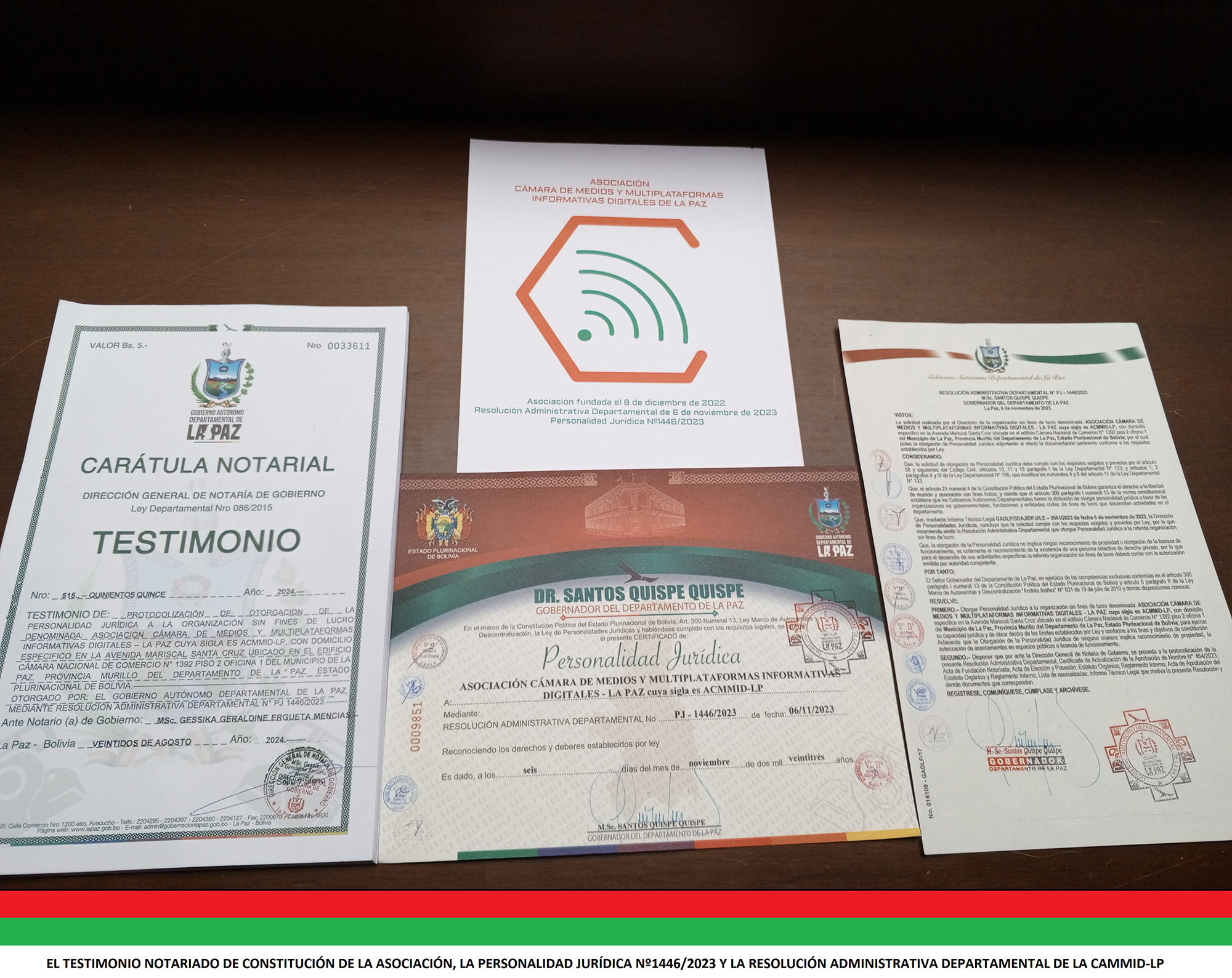Asociación fundada el 8 de diciembre de 2022. Resolución Administrativa Departamental de 6 de noviembre de 2023. Personalidad Jurídica Nº 1446/2023